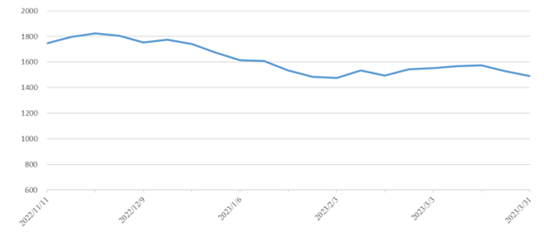 此外,華東指數(shù)報(bào)收1634點(diǎn),環(huán)比下跌126點(diǎn),跌幅7.16%;山東指數(shù)報(bào)收1303點(diǎn),環(huán)比下跌24點(diǎn),跌幅1.81%;福建指數(shù)報(bào)收1401點(diǎn),環(huán)比上漲8點(diǎn),漲幅0.57%。