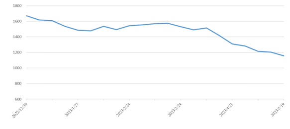 華南區(qū)域:受房地產(chǎn)行情震蕩影響,陶瓷需求恢復(fù)不及預(yù)期開(kāi)窯率在50%左右,導(dǎo)致出運(yùn)量仍然處于低位。本期華南指數(shù)報(bào)收1546點(diǎn),環(huán)比下跌7點(diǎn),跌幅0.45%,其中華南至東北指數(shù)報(bào)收1059點(diǎn),環(huán)比下跌37點(diǎn),跌幅3.38%,華南至華北指數(shù)報(bào)收1429點(diǎn),環(huán)比下跌20點(diǎn),跌幅1.38%。